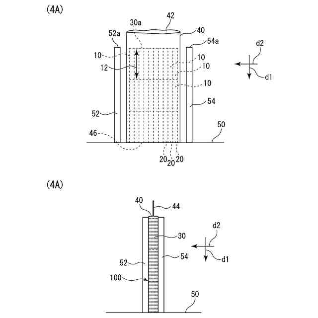 4Aおよび4Bは、本発明の発泡シート集合体梱包方法における圧縮封止工程の一実施態様を説明する工程説明図である。