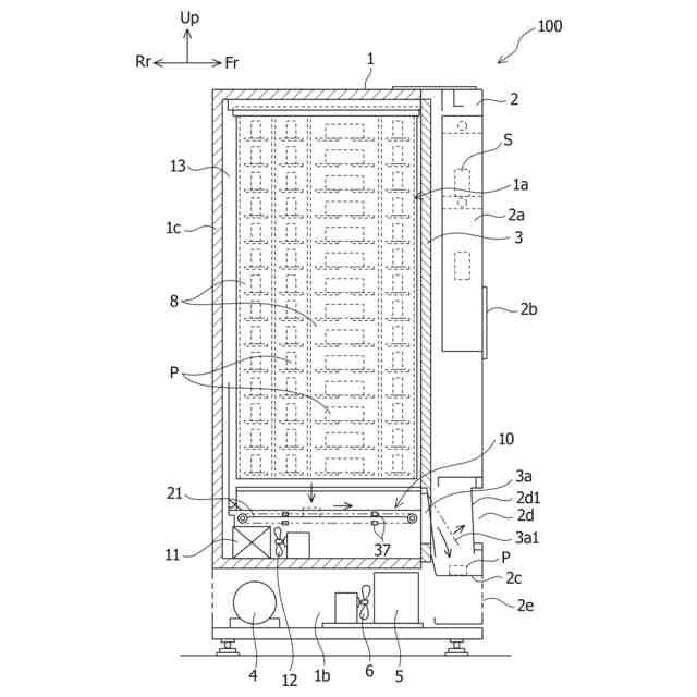 本発明の第一実施形態による自動販売機の自動販売機の側面断面図である。