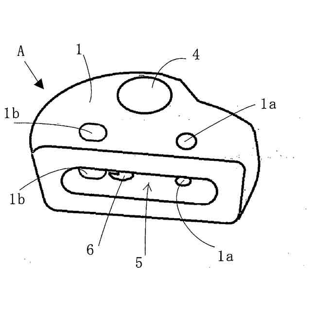 そして取付部6は、後側車軸3が後側車軸穴1bの前側にある時、歯車8の歯先8aが、取付部6に形成された縦方向の縦溝部6aに納まり(図4A図4B参照)、後側車軸3が後側車軸穴1bの後側にある時、歯車8の歯先8aが取付部6に取り付けられたゴムバンド10に触れない位置に形成されており(図4C参照)、取付部6の横幅6bは、空洞スペース横幅5aより小さく、空洞スペース5の側壁と取付部6の間に隙間6cができるよう形成されることで(図2参照)、ゴムバンド10が空洞スペース5の側壁に触れることなく、スムーズに巻き取り、繰り出しができるという効果がある(図4参照)。