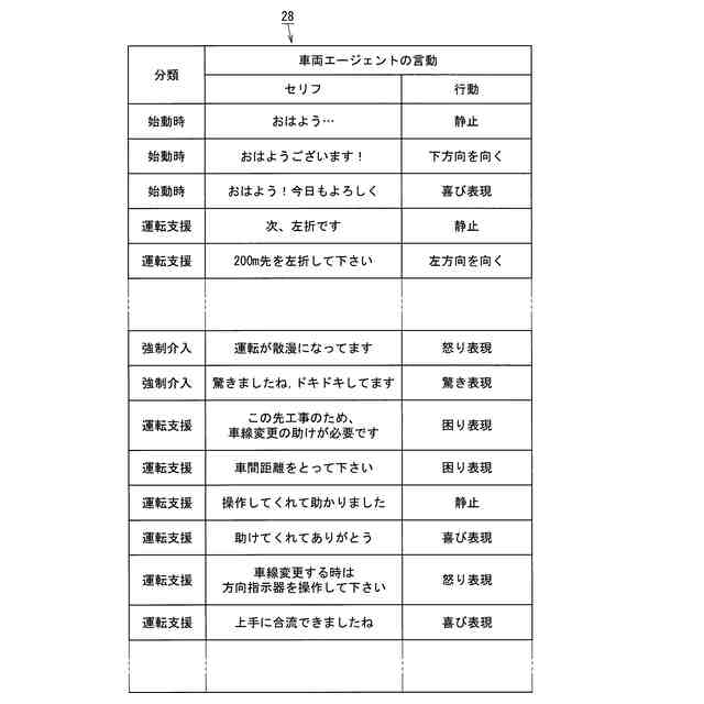 そこで、車両に疑似的な感情を設定し、ドライバと車両との間に車両エージェントを介した良好な心理的関係を構築する技術が提案されている。