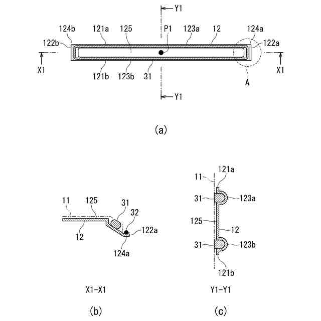 ルーフメンバの構成を示す(a)平面図、(b)X1-X1線による断面図および(c)Y1-Y1線による断面図である。