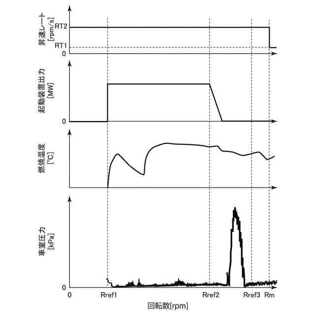 【解決手段】本願は、燃焼室に燃料を噴射するための複数の燃料噴射ノズルを有する燃焼器を有するガスタービンを起動するためのガスタービン起動方法に関する。本方法では、起動装置によってガスタービンに連結された発電機を駆動することにより、前記ガスタービンを起動し、複数の燃料噴射ノズルのうち一部の燃料噴射ノズルから燃料を噴射することにより、ガスタービンの回転数を増加させる。ガスタービンの回転数が、ガスタービンに燃焼振動が発生する回転数範囲の上限回転数より大きい基準回転数以上に達した場合、起動装置が停止される。