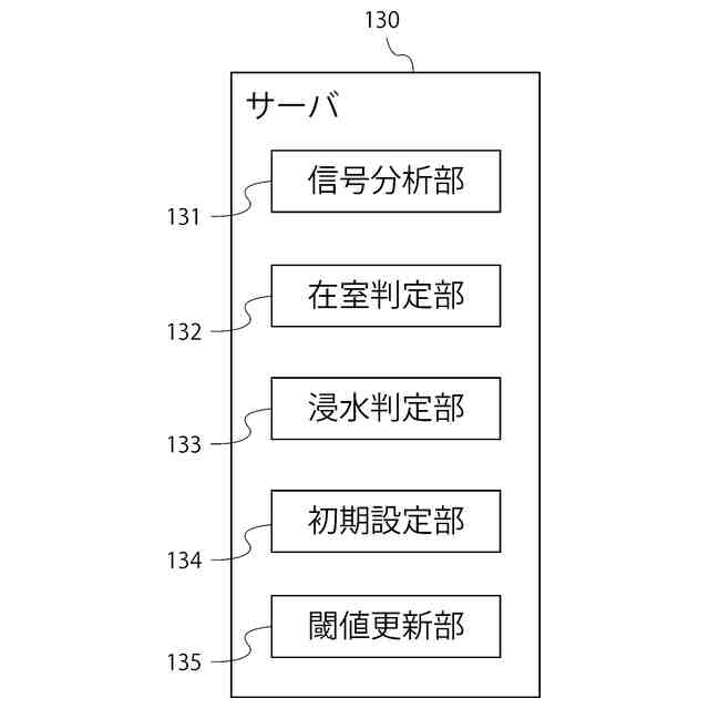 受信された前記電波信号の受信状態を示す第2のパラメータにより前記空間における浸水判定を行う浸水判定部を更に備える請求項1に記載の存在検知システム。