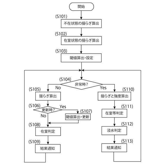 前記空間の第1の状態で受信された前記電波信号における前記第1のパラメータと、前記空間の第2の状態で受信された前記電波信号における前記第1のパラメータとに基づいて前記閾値を設定する設定部と、