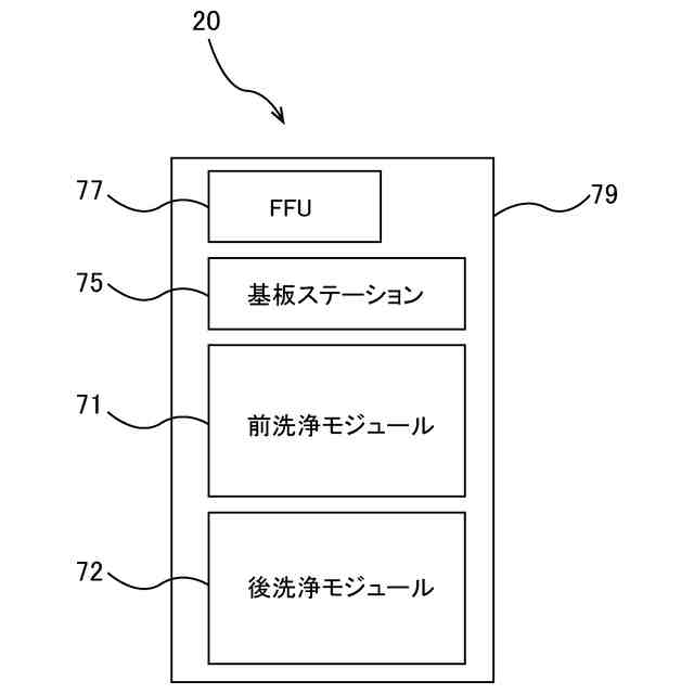 一態様では、前記中間ユニットは、前記基板ステーションおよび前記洗浄モジュールの上方に配置されたファンフィルタユニットをさらに備えている。