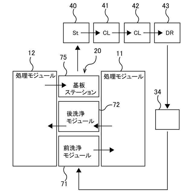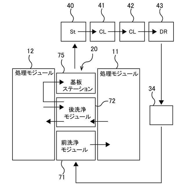 一態様では、前記洗浄モジュールは、前記複数の処理モジュールによって処理される前の前記基板を洗浄する前洗浄モジュールを含む。