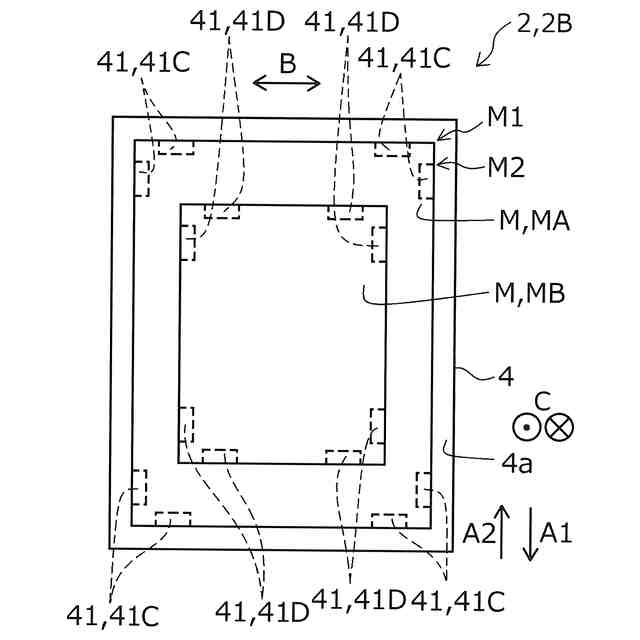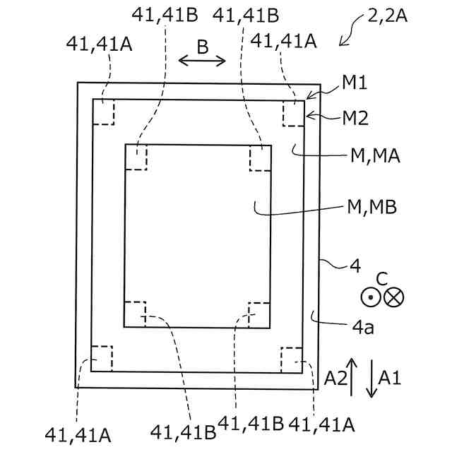 図3の支持部に2種類の大きさのフィルムを配置させた状態を表す概略平面図。