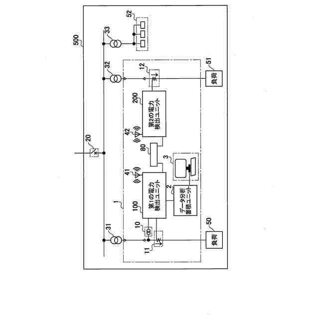 【解決手段】第1の電圧センサ10および第1の電流センサ11と、各センサの出力を得る第1の電力検出ユニット100と、第2の電流センサ12と、第2の電流センサ12の出力を入力し、第1の電力検出ユニット100と時刻情報を同期して作動する第2の電力検出ユニット200と、各電力検出ユニット100、200の出力から第2の電力検出ユニット200の設置地点における電圧を推定する電圧推定器と、電圧推定器の出力をもとに第2の電力検出ユニットの設置される地点での電力を算出する電力算出器と、を備えるデータ分析蓄積ユニット2と、を備える。電力検出ユニット100、200は、それぞれのユニットが持つ時刻を同期して、処理する。