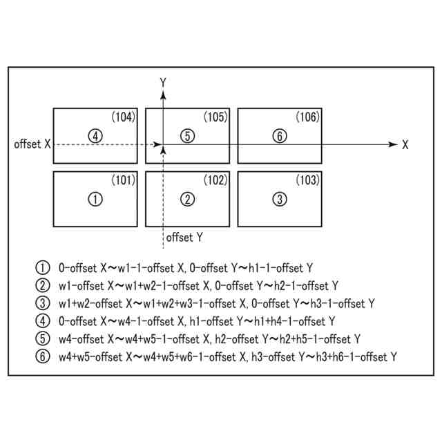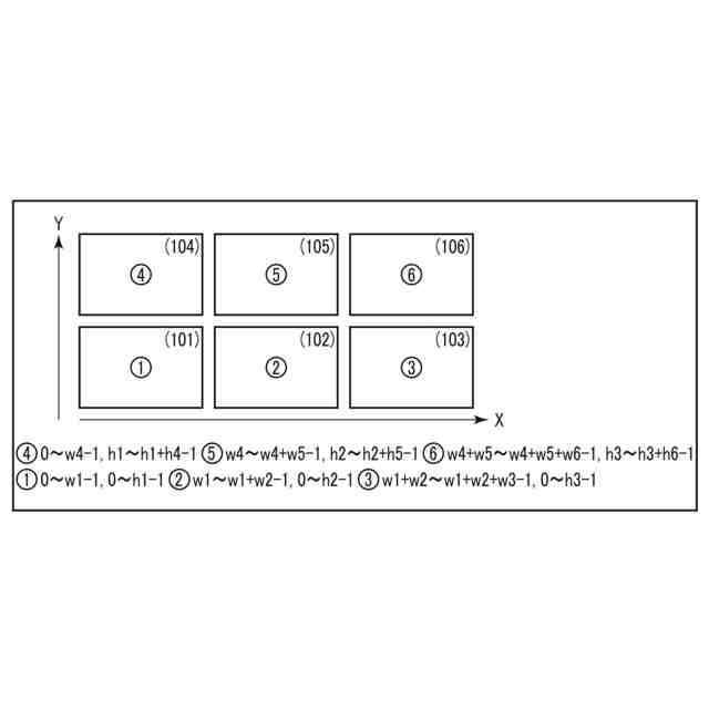 グループ化された複数台の関数電卓10(101~106)が連携して学習対象のデータを描画する場合の描画位置(座標範囲)の計算例を示す図である。
