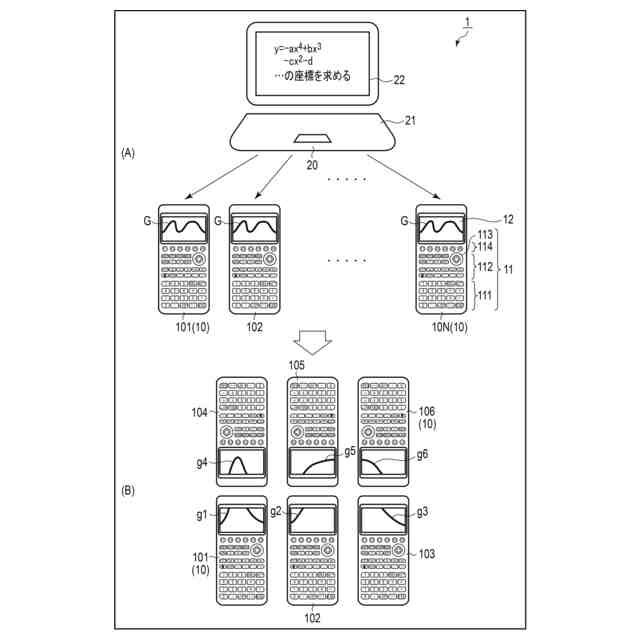 従来の計算装置では、関数電卓のユーザ一人ひとりが計算式のグラフを表示させて計算式に関する学習を行うことができるが、1つの課題を複数の生徒によるグループワークで解決するような場合において、効果的な学習を行うことはできなかった。
