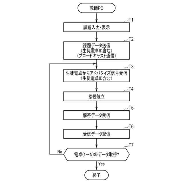 学習支援システム1において教師が使用する教師PC20の処理を示すフローチャートである。