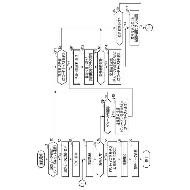 グループ化された他の学習支援装置から前記連携要求情報を受信した場合に、自機がスレイブ機器となり、前記連携グラフ描画処理を実行する、