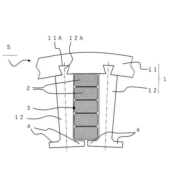 【解決手段】ステータコア1と、コイルを形成する平角線2とを備え、ステータコア1が、円筒状を成す本体部11と、本体部11の内周面に沿って所定間隔で配置した複数の突壁部12と、隣接する突壁部12同士の間に形成されるスロット3とを備えており、本体部11と複数の突壁部12とが、互いに分割可能に連結してあると共に、突壁部12が、夫々の先端に、本体部11の周方向両側に突出する突出部4を有し、夫々のスロット3に、複数の平角線2が束ねて収容してあるステータSとし、スロット3のコイルの占有率を高めると共に、放熱性の向上や製造コストの低減を実現する。