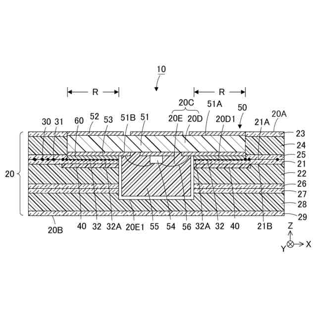 前記着色層と前記端子部との色差が、前記コア層と前記端子部との色差よりも大きく、かつ20以上であり、