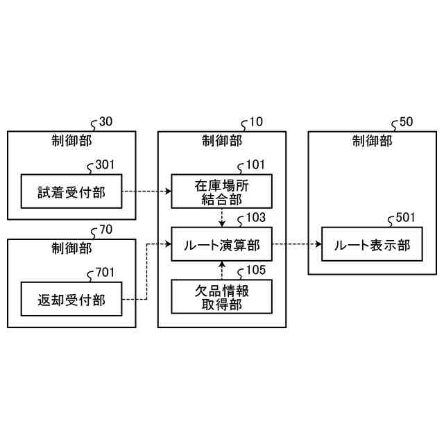 前記処理部は、店内の陳列数が下限に到達した商品の情報である欠品情報を取得したとき、当該欠品情報が示す商品が、前記返却対象の商品に含まれていれば、前記推奨ルートの生成に先立ち、前記返却対象の商品の届け先を、前記在庫場所から前記欠品情報が示す商品の陳列場所に、変更する