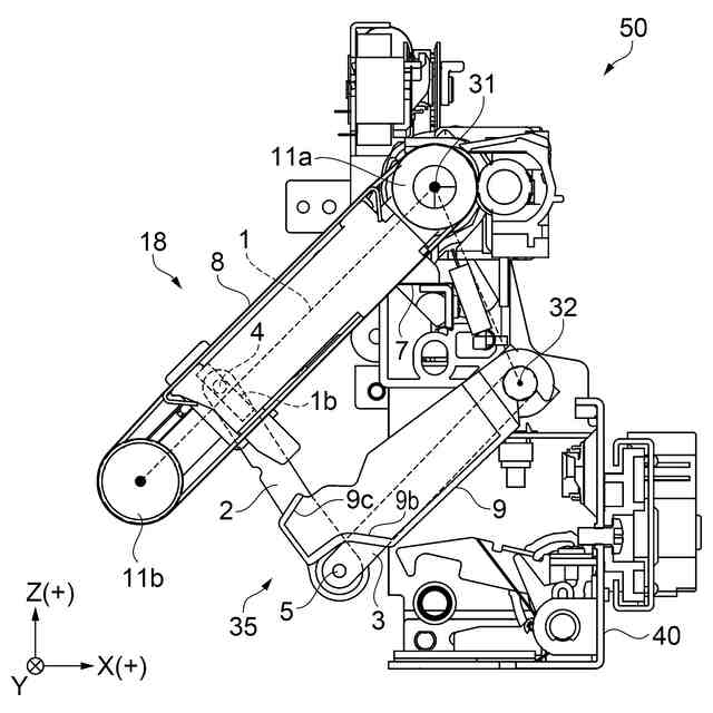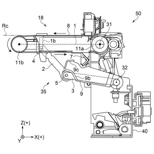 前記回収部は、前記搬送ベルトの移動に連動して移動する際に前記リンク機構によって姿勢が変化する、