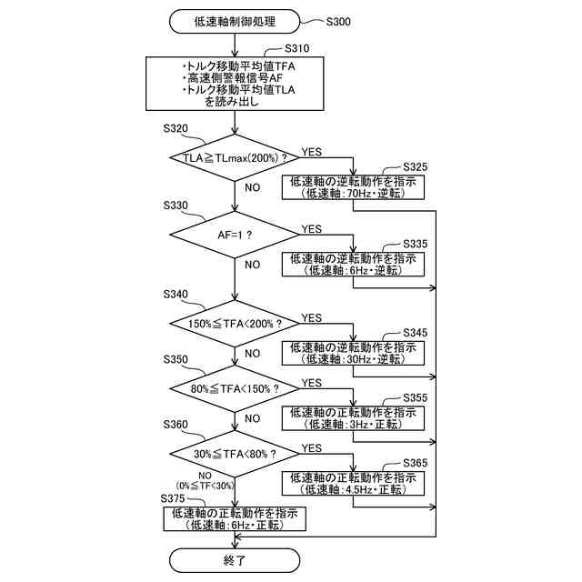 前記第2のトルク移動平均値が第2のトルク制限値未満、かつ、前記過負荷警報信号が前記過負荷保護制御の実行を示さない場合、前記第1のトルク移動平均値に応じた回転方向、かつ、前記第1のトルク移動平均値に応じた前記第1の回転速度より遅い回転速度で、前記第2の駆動モータを駆動するように前記第2のインバータ装置に指示し、
