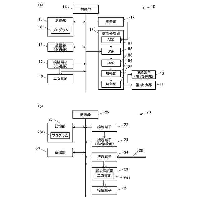前記第1の発音装置が前記収容部に収容されている場合に、前記電力供給部は、前記二次電池を充電可能である、