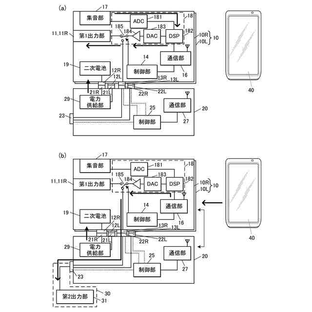 音の出力、通信及び充電について説明する図である。