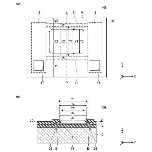 図8(a)は、本発明の第1実施形態の変形例6に係るセンサ素子の平面図、図8(b)は、図8(a)のA-A断面図である。