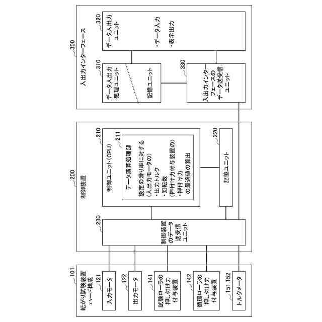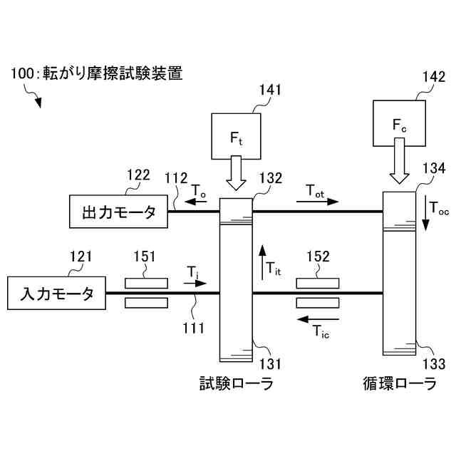 【解決手段】2組のローラ対の各ローラがそれぞれ装着されている2本の回転軸をそれぞれ独立して回転させる2つのモータと、2組のローラ対に、それぞれ独立して押し付け力を付与する2つの押し付け力付与装置とを備えることにより、滑り率を頻繁に変える試験を効率よく行うことができとともに、2組のローラ対によりトルクの循環を生じさせて低出力トルクのモータで高出力トルクの試験を実施することができる。