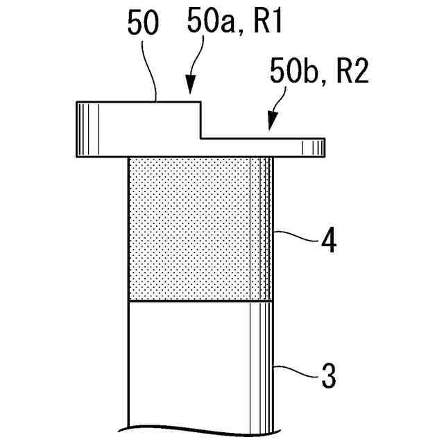 被検出部5は、導電性を有する材料から形成されており、回転軸3の第1端部3aの端面の一部と重なる領域に設けられる。本実施の形態においては、被検出部5は、金属の板で形成された金属板50である。