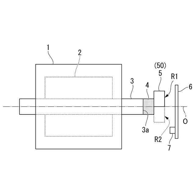 回転軸3、絶縁体4、および金属板50は一体となっており、回転軸3の軸心Oを中心として回転する。また、回転軸3の回転角度を検出するため、検出部6には回転角演算部7が搭載されている。