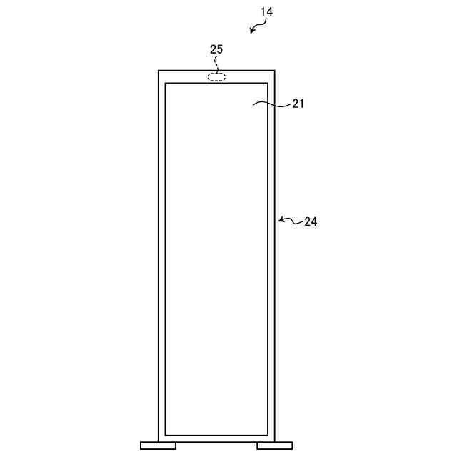 表示端末14は、通信ネットワーク12を介して情報処理サーバ11から送信された各種データを表示する。表示端末14は、例えば、店舗の試着室、店舗の通路などに設置される。表示端末14は、表示機能付きミラー装置(以下、スマートミラーと呼ぶ)などにより実現される。スマートミラーは、ミラー機能、モニター機能及び操作機能を有する。ミラー機能は、スマートミラーの利用者(ユーザ)を映す鏡としての機能である。モニター機能は、各種の情報を映像や画像などで表示する機能である。操作機能は、利用者がスマートミラーを操作するための情報を入力する機能である。スマートミラーは、例えば、ハーフミラーの背面側にモニター(表示部)を設けることで、ミラー機能及びモニター機能を有している。なお、表示端末14は、スマートミラーに限定されず、ユーザが所有するスマートフォン、タブレットなどであってもよい。このとき、通信ネットワーク12は、無線LANなどの無線の通信ネットワークに対応する。