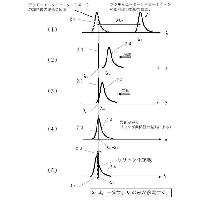 しかし上記の手法による起動では、周回型光導波路における二つの要因による共振周波数のシフト、具体的にはカー非線形効果による光学的なシフトと、温度上昇による材料そのものの屈折率の変化及び熱膨張に起因する熱的なシフトの両方を考慮しなければならず、非常に複雑である。