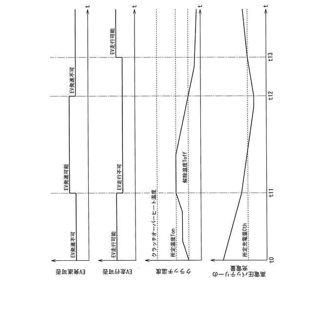 【解決手段】クラッチを介して駆動輪に動力を伝達可能なエンジンと、クラッチを介さずに駆動輪に動力を伝達可能なモータジェネレータと、モータジェネレータに電力を供給する高電圧バッテリと、高電圧バッテリの充電量が所定充電量Cth以上であり、かつクラッチ温度が所定温度Ton以上である場合に、クラッチを切断状態としてモータジェネレータの動力を駆動輪に伝達して発進を行う制御装置と、を備える。