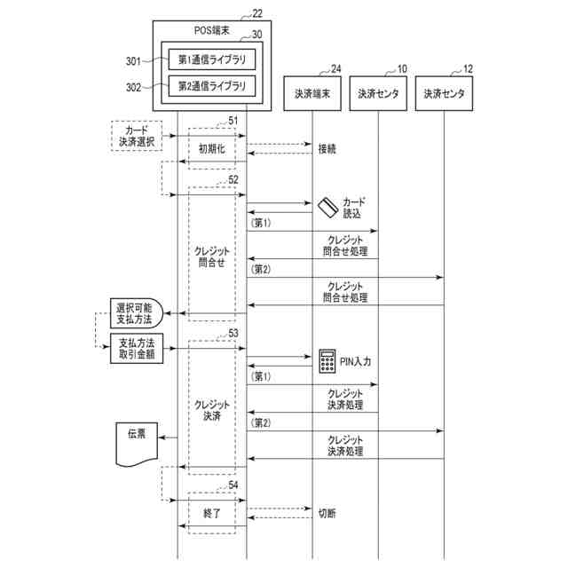 従って、ある店舗において使用可能なクレジットカードの種類を変更する場合には、その変更に合わせて、変更後の決済センタに対応する電文(データ)を生成して、対応する決済センタと通信をするための機能をPOS端末に実装する必要がある。このため、特に、稼働させているPOS端末が複数ある店舗(例えばスーパーマーケット等)では、使用可能なクレジットカードの種類を変更するタイミングに合わせて、POS端末の機能を変更するための作業負担が大きかった。