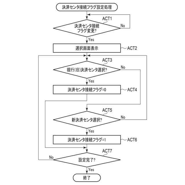 図7は、本実施形態におけるPOS端末における決済センタ接続フラグ設定処理における設定画面の一例を示す図である。