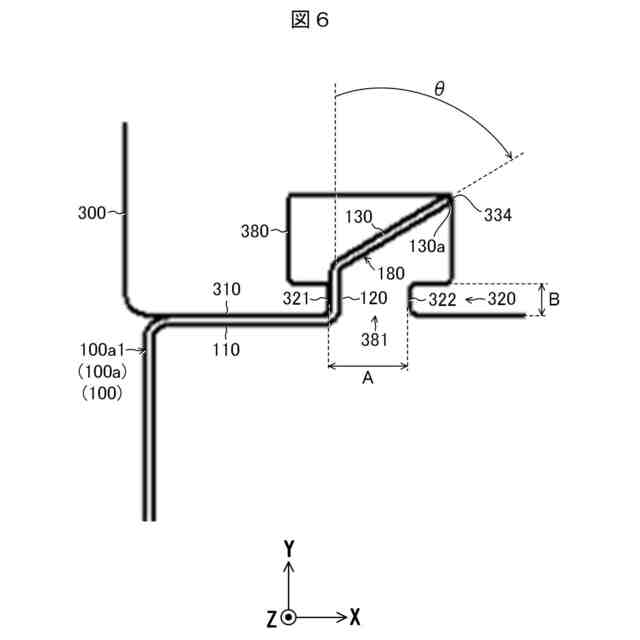 前記第1入口内面部と前記第2入口内面部との前記X軸方向の距離をA、前記第2入口内面部の前記Y軸方向の寸法をB、前記延出部の前記Y軸方向に対する傾斜角をθとしたとき、arctan(A/B)≧θを満たす、
