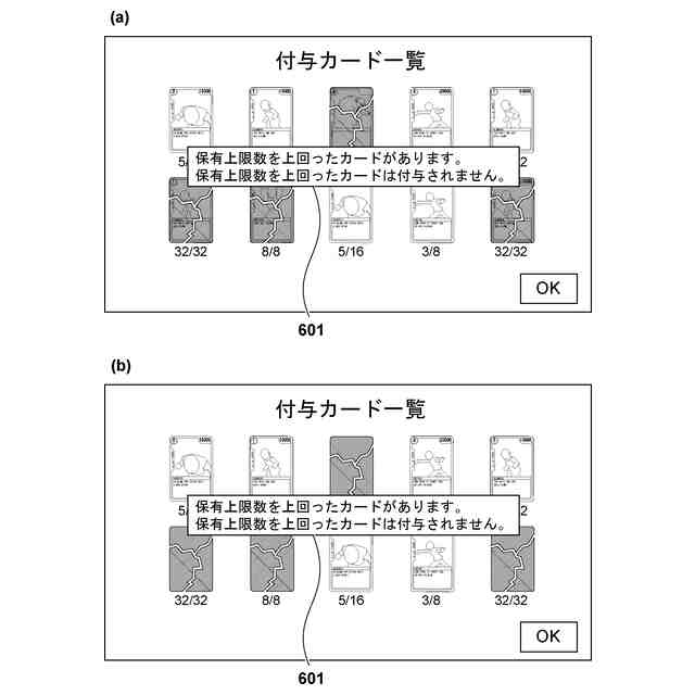 本発明の実施形態及び変形例に係るクライアントアプリケーションにおいて表示されるカード抽選機能の結果画面を例示した図