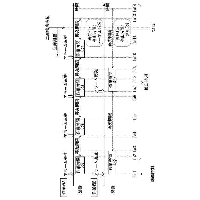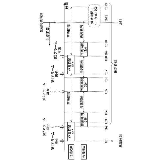 ところで、装置エラー等による設備アラームは、処置する作業者のスキルや処置の仕方によって作業時間と、再発するまでの間隔や頻度が異なることがある。処置が早く、再発までの間隔が長い作業者を揃えられれば良いが実際には差異がある。例えば、アラーム解消後の調整が上手ではあるが作業時間が長い作業者と、解消後の調整はほどほどであるが作業時間は短い作業者がいた場合、前者は処置後の再発までの間隔が長くなり、後者は処置後の再発までの間隔が短くなる。この場合、アラーム再発の間隔によっては、前者の作業者が処置したほうが、生産時間全体でみたアラームによるライン停止時間が短くなる可能性がある。このように、ライン停止時間を精度良く予測するには、場合によっては、作業時間と再発間隔について作業者の違いによる差を考慮する必要がある。