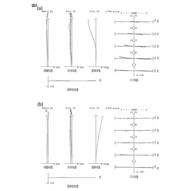(a)は第8実施例の変倍光学系の広角端状態における諸収差図であり、(b)は第8実施例の変倍光学系の望遠端状態における諸収差図である。