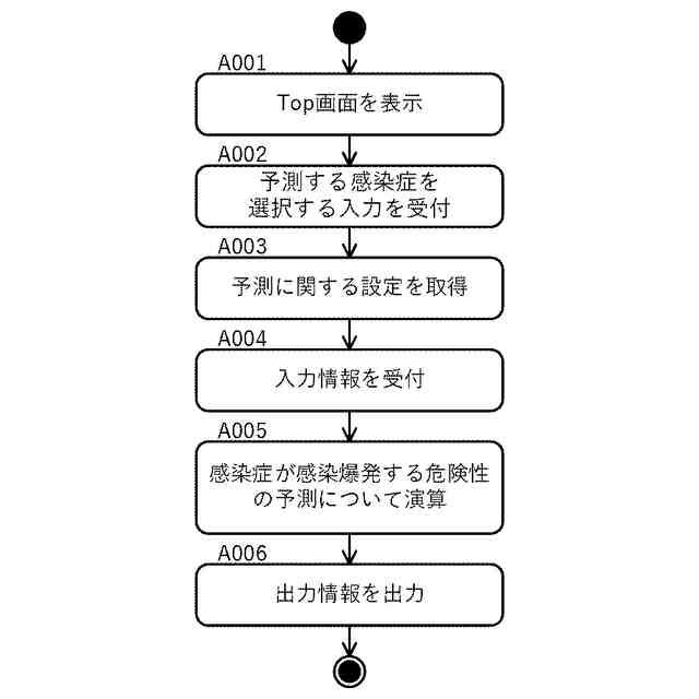 受付ステップでは、入力情報を受け付け、ここで前記入力情報は、特定の感染症に罹患した感染者数に関する第1の入力情報及び気象に関する第2の入力情報のうち、少なくとも1つを含む情報であり、