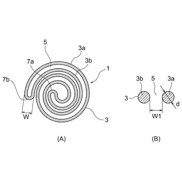ガスケット本体は、並行する2本の間にスリット状の内側領域を有し、当該内側領域が長さ方向に渦巻形となるように巻回した形状に成型され、