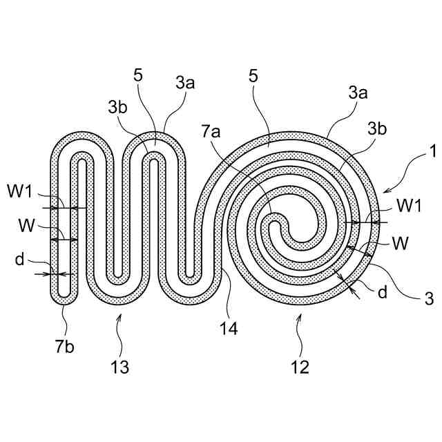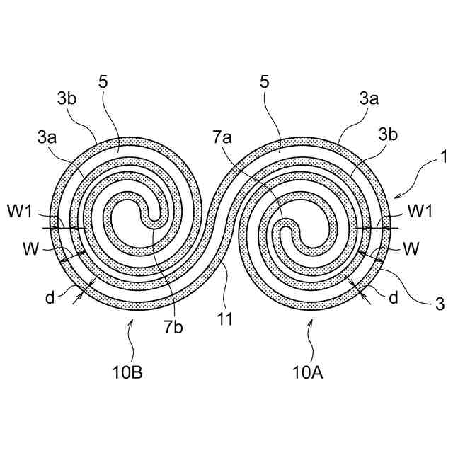 前記ガスケット本体は、並行する2本の間にスリット状の内側領域を有し、当該内側領域が長さ方向に渦巻形となるように巻回した形状に成型され、