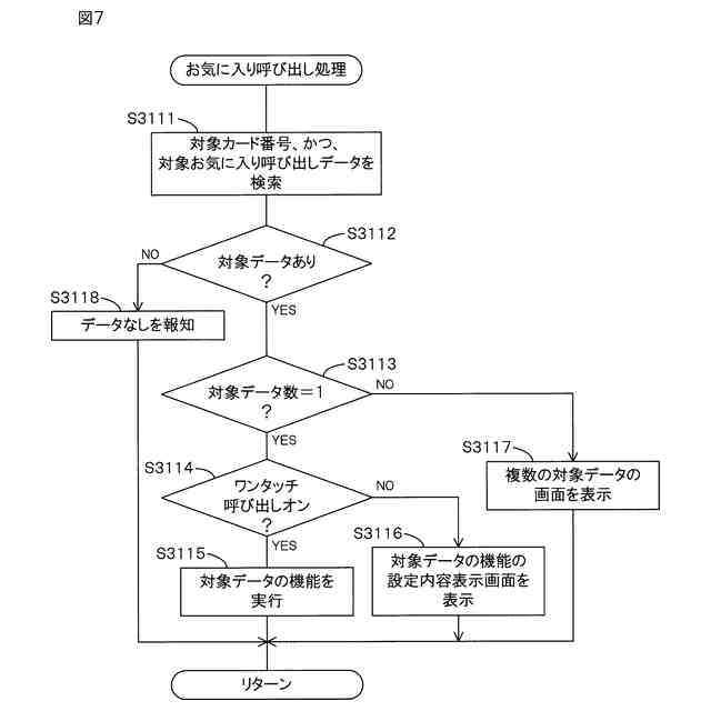 【解決手段】操作パネルにホーム画面41が表示されている状態でICカードのカード番号が読み取られた場合には、その読み取られたカード番号に対応づけられた全登録データに対応するショートカットキー61を含むショートカット表示画面44が操作パネルに表示される。また、操作パネルに特定の機能に関するコピーモード画面42、スキャンモード画面43またはファックスモード画面が表示されている状態でICカードのカード番号が読み取られた場合には、特定の機能に関する設定が含まれる登録データに対応するショートカットキー61を含む機能限定ショートカット表示画面46が操作パネルに表示される。