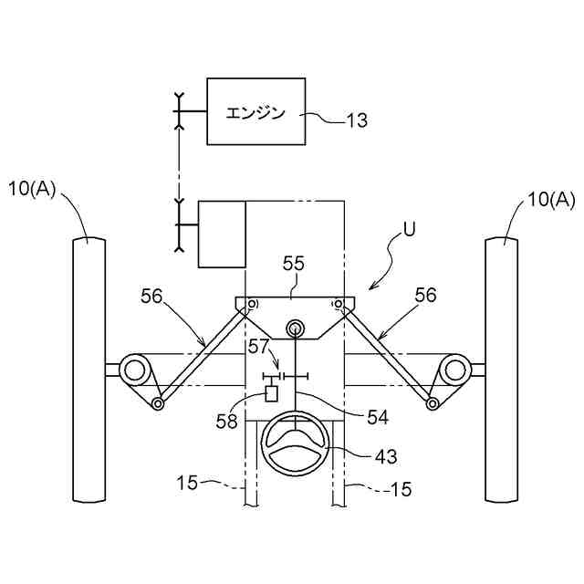 【解決手段】走行装置を有する走行機体Cと、走行装置を操向可能な操向ユニットと、衛星測位システムにより位置情報を取得する受信装置63と、受信装置63を走行機体に支持する支持フレーム30,31とを備え、支持フレームは、それぞれ上側へ延びる左右の縦向き部30と、支持フレーム30,31の上端部において走行機体Cの左右方向に沿って延びる横向き部31と、を有しており、支持フレーム30,31の上端部に板状部材65が連結され、板状部材65に受信装置63が支持されており、板状部材65の前端は受信装置63の前端よりも前方に位置している。
