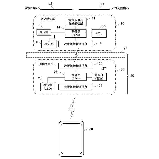 【解決手段】近距離無線通信手段(16)および所定の通信アドレスを用いて受信機と有線で通信する機能を有する感知器(10)の表面に被着可能な感知器用保護カバー(20)において、前記近距離無線通信手段による通信が可能な距離よりも通信距離が長く公衆無線通信システムを用いた通信機能を有する無線通信端末の前記通信機能による通信が可能な距離よりも通信距離が短い中距離無線通信手段(25)と、前記近距離無線通信手段(16)へ無線通信で情報を送信可能なカバー側近距離無線通信手段(24)と、電源電圧を供給する電源手段とを備え、中距離無線通信手段により受信した情報をカバー側近距離無線通信手段へ伝達し、カバー側近距離無線通信手段により感知器の近距離無線通信手段へ通信アドレス情報を送信可能に構成した。