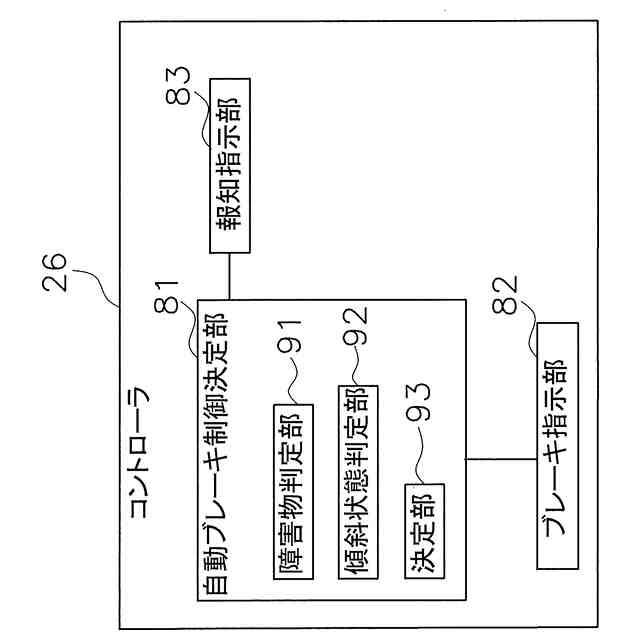 しかしながら、ホイールローダでは土砂を積み上げる掻き上げ作業が行われることがあり、ホイールローダは土砂の山の傾斜を登って掻き上げ作業を行う。このような場合、従来の自動停止システムでは後進時に地面を障害物として検出して障害物警報を出力するためオペレータには煩わしかった。