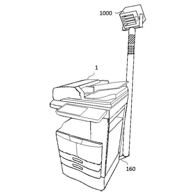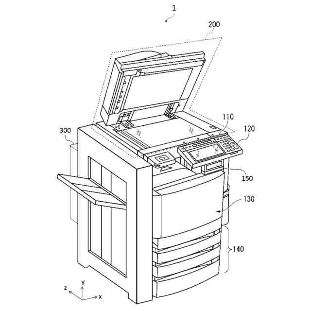 以下、確実かつ人に操作負担をかけないよう、殺菌灯を制御する一実施形態について図面を参照して説明する。図1は、一実施形態に係る画像形成装置1の外観をフロント左上方から見た斜視図である。図1左下方に、画像形成装置1の左側から右側へ向かう矢印x、フロア側から上へ向かう矢印y、フロント側からリヤ側へ向かう矢印zを記している。