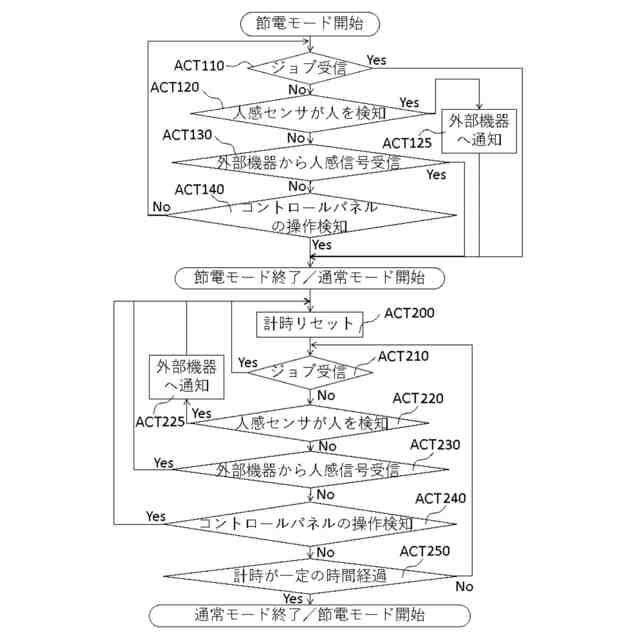 一実施形態に係る画像形成装置の電力供給のモード制御に関するフローチャ ート。