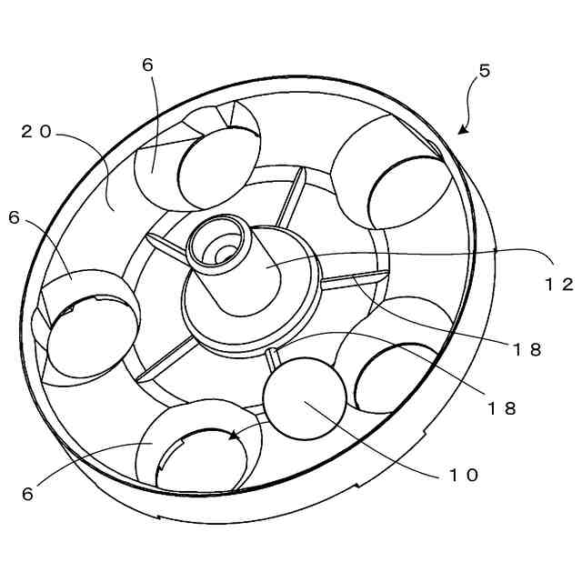 従来、金属板と樹脂を一体成形した回転体が考えられていた。従来の回転体は、金属板の周囲を樹脂で覆い、金属板によって樹脂層の強度を向上させたものであった。また、コインを押動する押動突起は、樹脂層の中の金属板によって補強されていた。回転体に金属板が挿入されていたとしても、露出している樹脂の部分は、コインとの接触によって、損傷する問題があった。回転体の損傷の位置によっては、回転体が正常に機能しなくなる。また、コインの他に異物が容器に入った場合に、回転体は、異物と接触し、摩耗したり、傷ついたりする場合がある。最悪の場合、回転体は、使えなくなり、交換する必要がある。一体成形された回転体は、一部分だけに問題がある場合であっても、回転体の全体を交換する必要がある。このような回転体は、使用可能な部分があっても交換しなければならず、使用可能な部分が無駄になる問題があった。