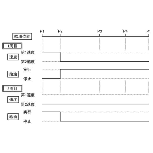 同実施形態に係る給油位置、速度状態及び給油状態の他の例を示すタイムチャート図