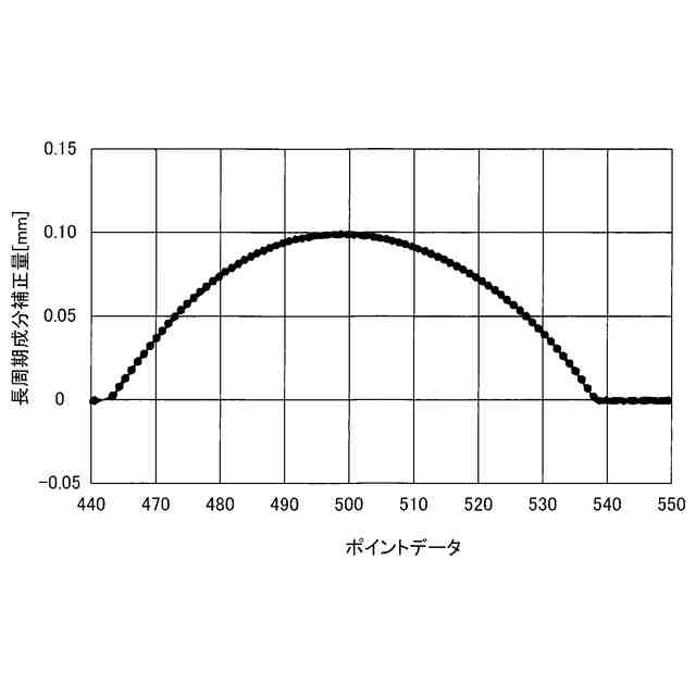 第1実印刷軌道の長周期成分の蛇行を補正するための補正量の一例を示す図である。