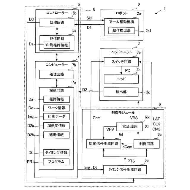 特許文献1に記載の装置では、ロボットアームの動作誤差に起因してプリントヘッドから吐出されるインクの着弾位置にずれが生じてしまい、この結果、印刷品質の低下を招く虞がある。