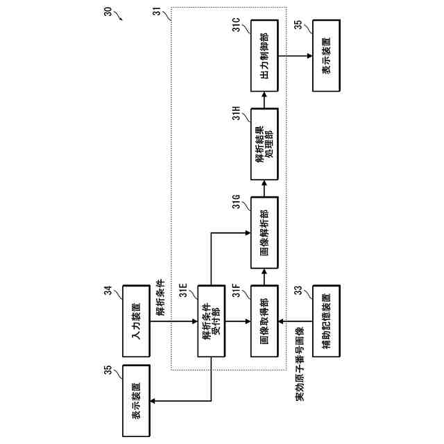 前記表示部に表示された前記実効原子番号の中から選択を受け付けて、解析対象とする前記実効原子番号の設定を受け付ける、
